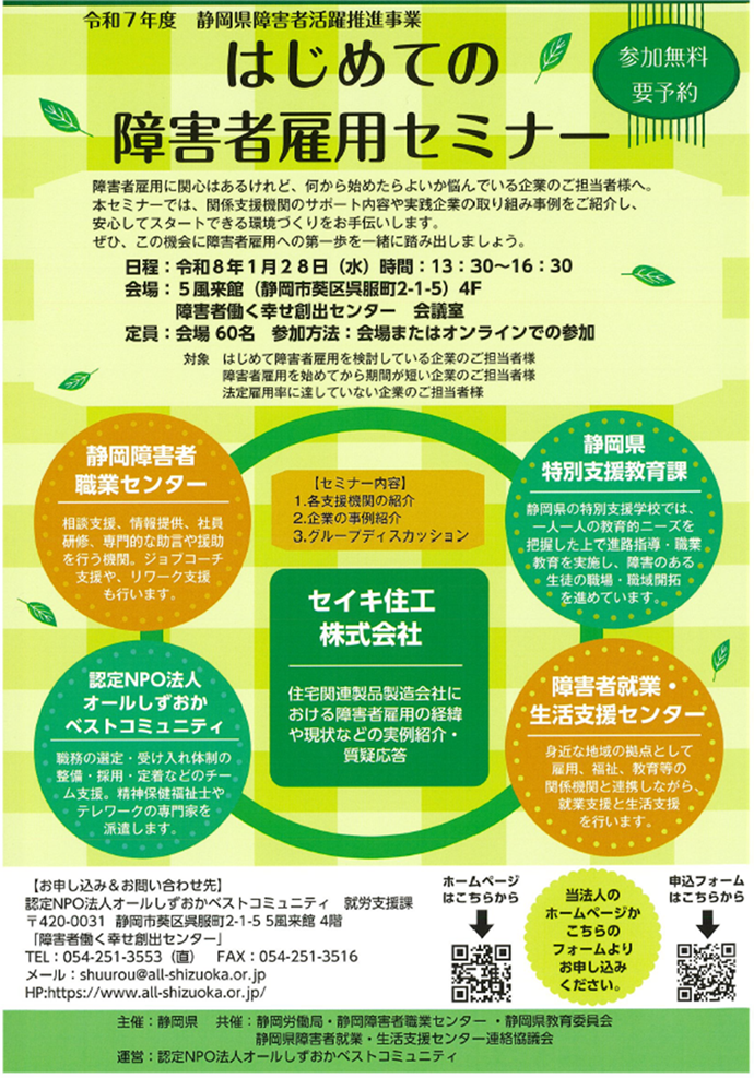 【おしらせ】令和7年度 静岡県障害者活躍推進事業 「はじめての障害者雇用セミナー」